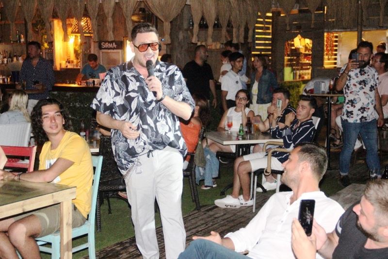 Cem Özer’in işlettiği Akyarlar’da bulunan Portobianco Beach’te sahne alan usta sanatçı Metin Arolat, sevilen şarkılarını sevenleriyle paylaştı. Arolat’ı dinlemeye gelen hayranları hep birlikte şarkı söyledi. Tatilcilere unutulmaz bir gece yaşatan Arolat, duygusal şarkılara yer vermeyi de ihmal etmedi. Sosyal mesafe kurallarına uyarak sahneye çıkan ve şarkılarını sevenleriyle birlikte söyleyen Arolat, masaların arasından gezerek şarkılarını seslendirdi.