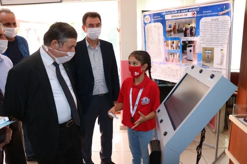 Manisa Bilim ve Sanat Merkezi öğrencileri hazırladıkları projelerle TEKNOFEST 2020’den dereceyle döndü. Manisa Bilim ve Sanat Merkezi öğrencilerinden Aybüke Demirok, “DOKUN-MA-TİK” adlı projeyle ’İnsanlık Yararına Teknoloji Yarışması Sağlık ve İlkyardım Kategorisinde’ birincilik ödülünü alırken, Cüneyt Yümer ile İsmail Çeşmeci “Uçaklar için Güvenli İniş Sistemi” isimli projesiyle ’İnsanlık Yararına Teknoloji Afet Kategorisi’nde üçüncülük ödülü aldı. Şehzadeler Kaymakamı Celal Hüsnü Çaykara, Şehzadeler İlçe Milli Eğitim Müdürü Metin Gençay da Manisa Bilim ve Sanat Merkezi’ni ziyaret ederek Gaziantep’te düzenlenen TEKNOFEST 2020’de dereceyle dönen öğrencileri tebrik etti. Öğrencilerin hazırladığı projeleri inceleyen Kaymakam Çaykara, Bilim ve Sanat Merkezi Müdürü Özgür Emeksiz’den bilgi alarak öğrencilere hediye verdi.