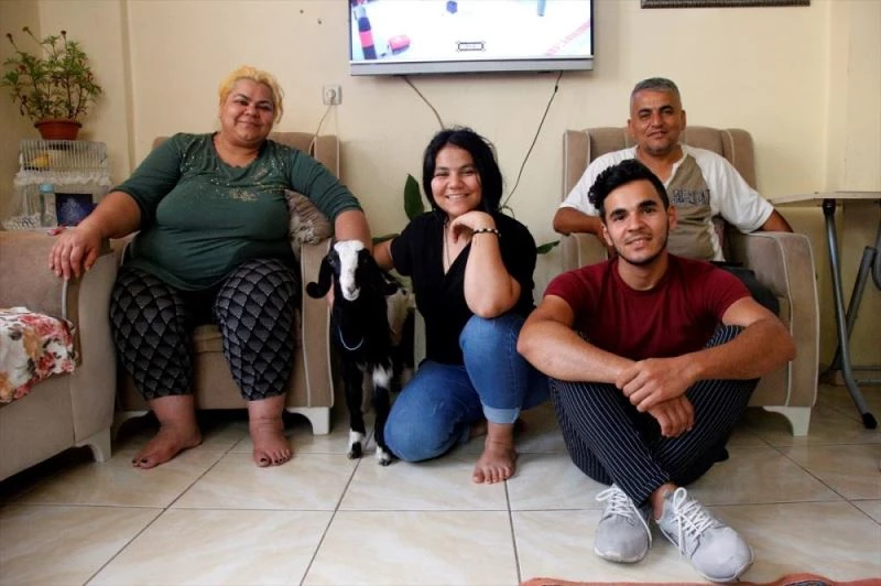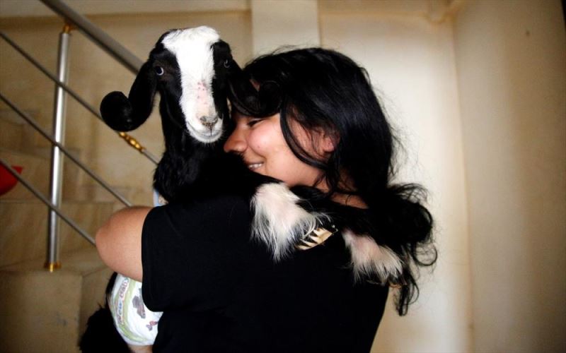 HATAY (AA) - LALE KÖKLÜ - Annesini kaybeden ve adını "Rıfkı" koydukları keçi yavrusunu sahiplenen Tecimen ailesi, onunla aynı evi paylaşıyor, birlikte uyuyup, ev gezmelerine gidiyor.