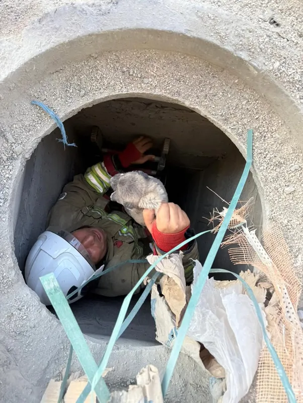 HATAY - Hatay'ın merkez Antakya ilçesinde bir şantiyedeki gider borusuna düşen köpek yavrusu, itfaiye ekibince kurtarıldı.