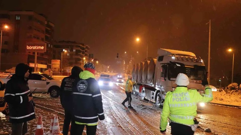 Denizli’de sabah saatlerinde etkili olan sağanak yağmur, akşam saatlerinde yerini yoğun kar yağışına bıraktı. Kısa sürede etkili olan kar, kent merkezini adeta beyaza bürüdü. Karın tadını çocuklar yaşasa da, mesai çıkışı hazırlıksız yakalanan sürücüler ise zor anlar yaşadı. Şehir merkezinin bir çok noktasında maddi ve yaralamalı kazaları beraberinde getiren kar, bazı yolları ise ulaşıma kapattı. Denizli-Antalya Karayolu bir süre trafiğe kapatılırken, ekiplerin yoğun uğraşı sonucu yollar açılarak geçişler sağlanmaya başladı. Şahin Tepesi Mevkii’nde bekleyen polis ekipleri araçların da kar lastiği ve zincir bulunan sürücülere geçiş hakkı verirken, hazırlıksız olan sürücüler ise geri gönderildi. Bir çok noktada kalan sürücüleri imdadına yetişen seyyar zincir satıcıları ise vatandaşlara yoğun kar yağışının altında imkan sağladı. Ekipler yolların kapanmaması için hummalı çalışmalara devam ediyor.