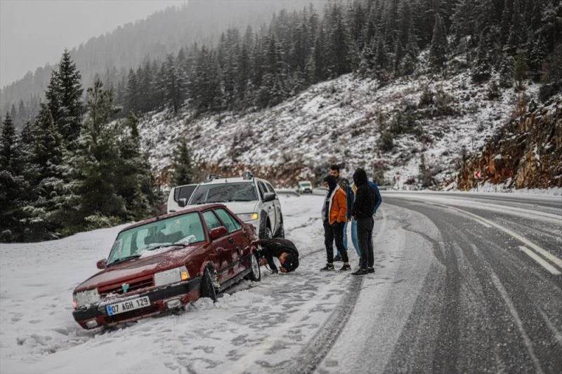 ANTALYA (AA) - Antalya'nın Akseki ilçesindeki yoğun kar yağışı nedeniyle Antalya-Konya kara yolunun 1825 rakımlı Alacabel mevkisinde ulaşımda aksamalar yaşanıyor.