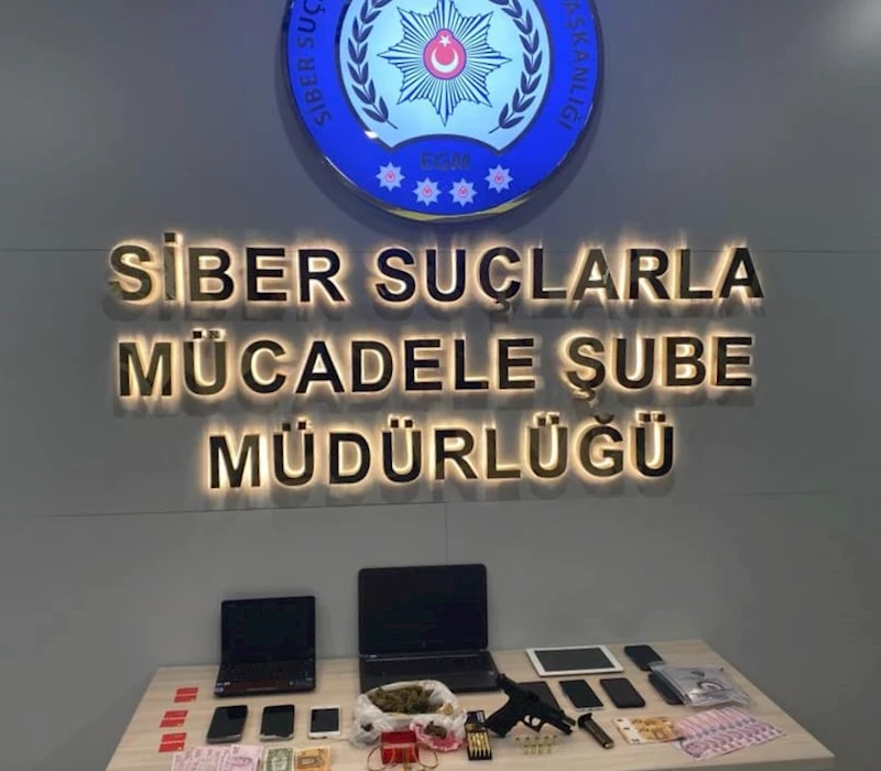 Şüphelilerin ev ve iş yerlerinde yapılan aramalarda, 1 ruhsatsız silah, silaha ait şarjör ve fişekler ile bir miktar uyuşturucu ele geçirilirken, 2 diz üstü bilgisayar, 1 tablet, 9 telefon, 6 sim kart, 1 sabit disk ve dolandırıcılıktan elde edildiği değerlendirilen bir miktar para ve ziynet eşyasına el konuldu.