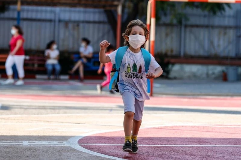 Aileleriyle okula gelen öğrenciler, bahçede birlikte İstiklal Marşı'nı okudu. Maske kontrolü yapılan ve öğretmenleri eşliğinde tek sıra halinde sınıflara alınan öğrenciler, sıralarına geçerek derse başladı.