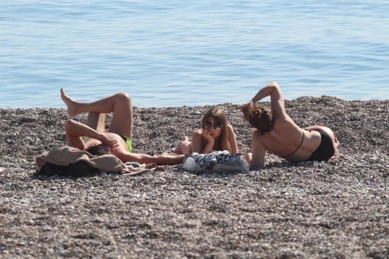 Antalya sahillerinde yaz sezonu aratmayan görüntüler