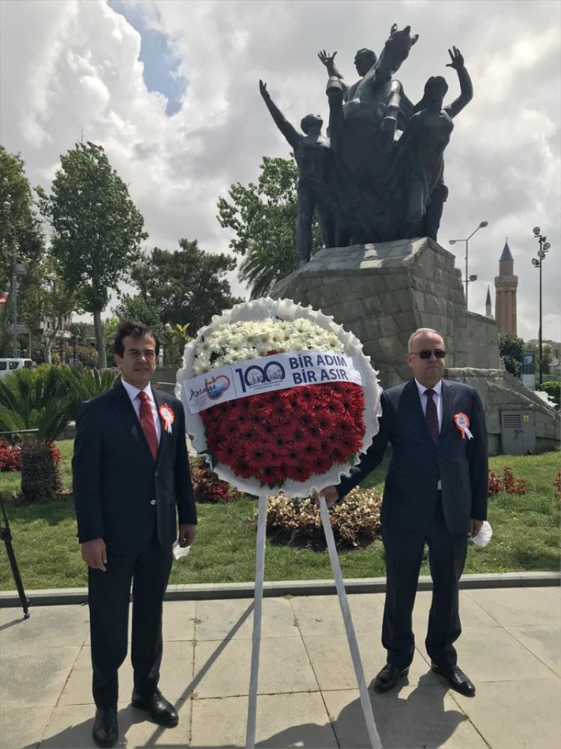 ATB'nin 100. kurulus yil dönümü dolayisiyla Cumhuriyet Meydani'nda bir araya gelen Çandir ve ATB Meclis Üyeleri, Atatürk Aniti'na çelenk sundu.