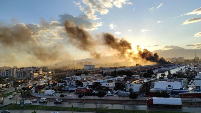 Antalya Büyükşehir Belediyesi Toptancı Hali’ndeki bir iş yerinde çıkan yangında plastik kasalar alev alev yandı, çok miktarda sebze ve meyve zarar gördü.