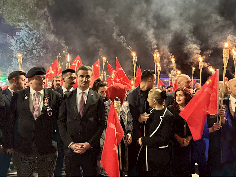 Menteşe'de Cumhuriyet Meydanı'nda başlayan fener alayı, Atatürk Anıtı'nda sona erdi. Şarkıcı Manga, konser verdi.