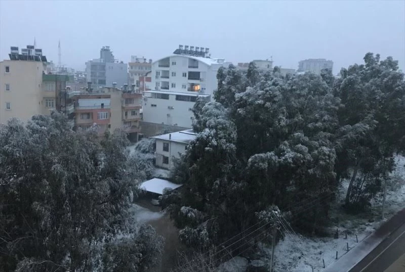 Kent merkezinde gece saatlerinde başlayan ve aralıklarla devam eden yağış, sabah saatlerinde kısa süreliğine etkisini artırdı. Konyaaltı Sahili'ndeki çimler karla kaplandı.