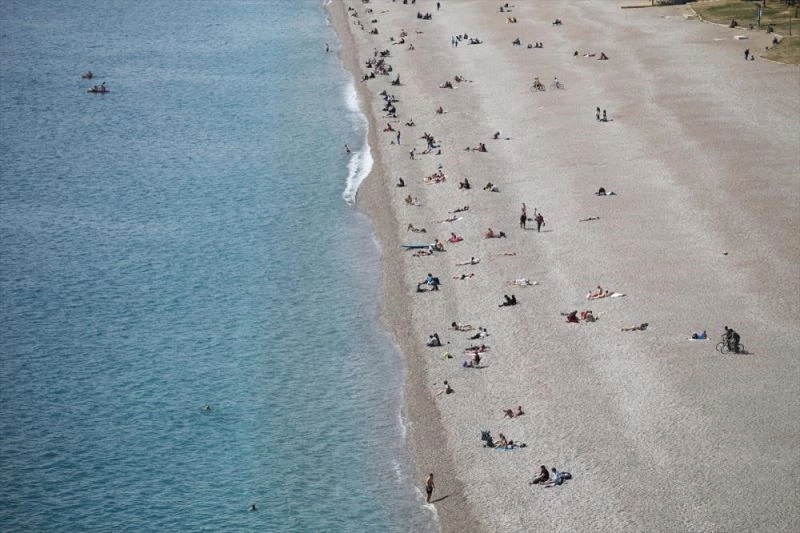 Dünyaca ünlü Konyaaltı Sahili'nde, Antalyalılar ve turistler güneşlenmenin keyfini çıkardı. Bazı vatandaşlar denize girerken, bazıları ise balık tuttu, bisiklet sürüp palmiyelerin altında yürüyüş yaptı.