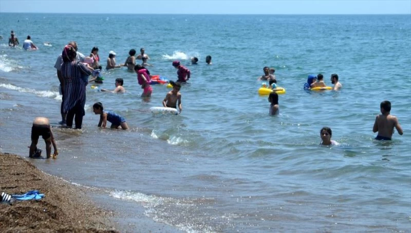 Denize birlikte giren aileler disindakilerin denizde de sosyal mesafeyi korudugu gözlenirken ayni hassasiyetin, maske tedbirine gösterilmemesi dikkati çekti.