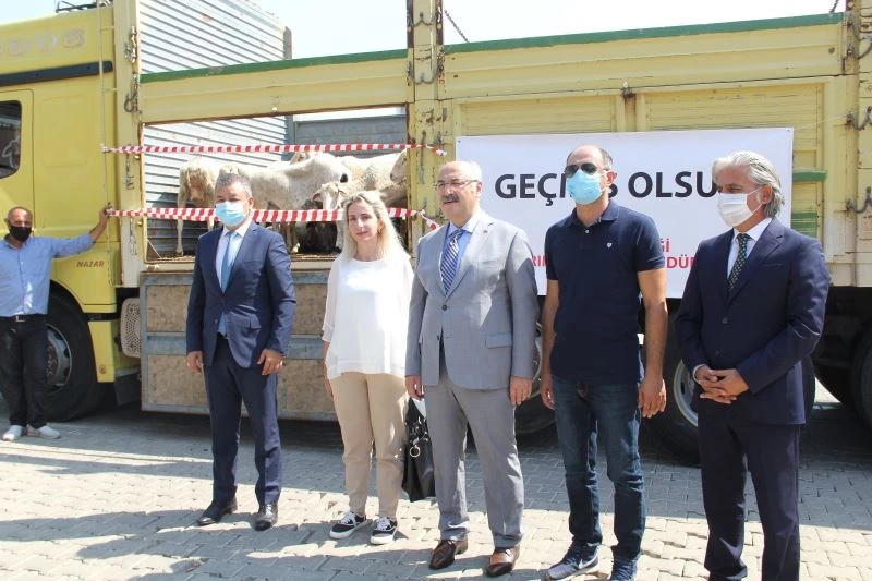 Vali Yavuz Selim Köşger’in konuşmasının ve edilen duanın ardından küçükbaş hayvanları taşıyan TIR yola çıktı.