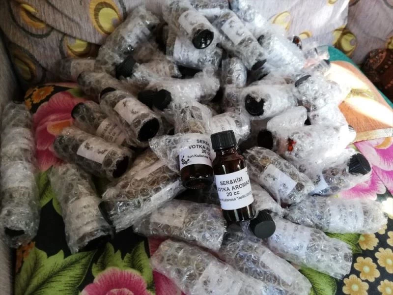 Operasyonda, 2 bin 500 litre kaçak içki, 2 sise kaçak viski, 164 içki aromasi ve 460 sahte etiket ele geçirildi.