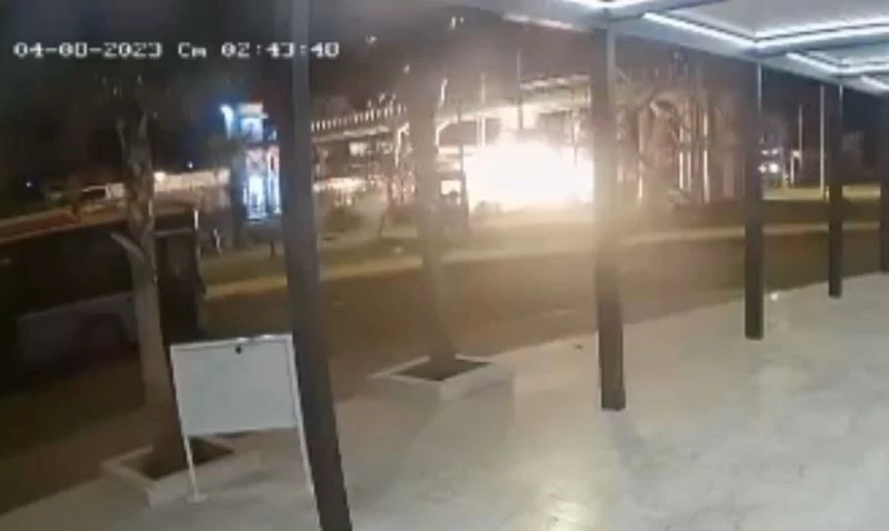 Öte yandan kaza anı güvenlik kamerasına saniye saniye yansıdı. Görüntülerde süratli olduğu görülen otomobilin önce refüje, ardından üst geçit direğine çarpması yer aldı. Aracın çarpma sonrası alev alması da görüntülere yansıdı.
