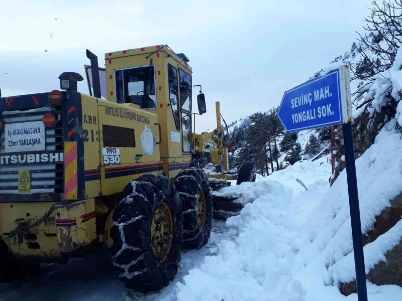 Antalya’da 2 metreyi bulan karla mücadele çalışması
