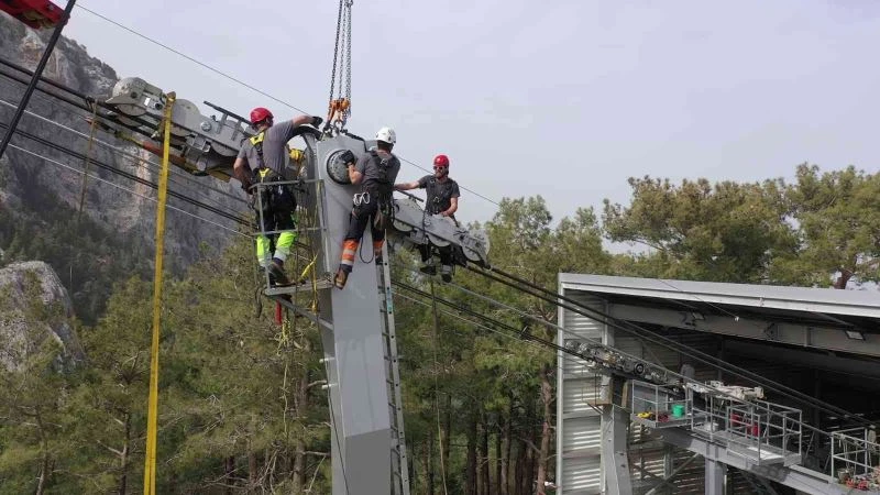 Antalya’da 4 bin 350 metre uzunluğundaki teleferiğin çekici halatı değiştirildi