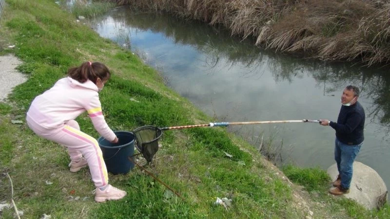 Antalya’nın Manavgat ilçesindeki sulama kanalında yaşanan balık ölümlerine seyirci kalamayan 9 yaşındaki kız çocuğu, babası ile birlikte kanala giderek can çekişen balıkları topladı. Balıkları temiz bir su ile buluşturan kız yüzlerce İsrail Sazanının telef olmasını önledi.