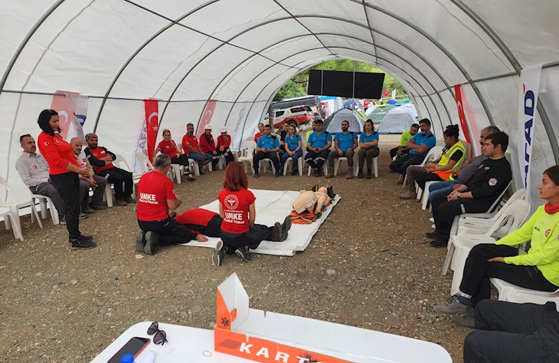 Kampta doğada ve suda arama kurtarma, orman yangınları, ilk yardım, psikososyal destek, sedye ile yaralı indirme, telsiz ve koordinat kullanımı, barınma gibi konularda gündüz ve gece eğitimler verildi.