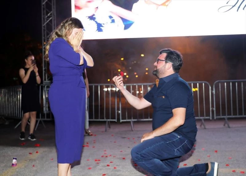 ANTALYA (AA) - Antalya'nin Alanya ilçesinde, belediye tarafindan organize edilen etkinlige kiz arkadasiyla gelen bir genç, birlikte yer aldiklari fotograflarin beyaz perdeye yansitilmasinin ardindan evlenme teklifi yapti.
