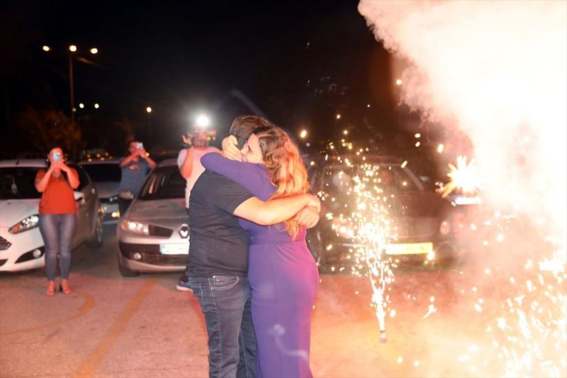Hacibayramoglu, arkadaslarinin yaktigi mesaleler arasinda kiz arkadasi Ersöz'e evlenme teklifinde bulundu.