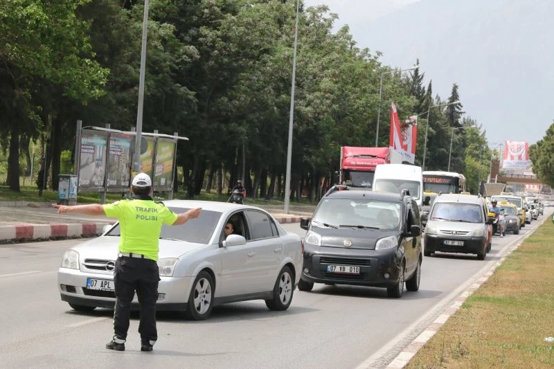 Antalya’da araçlar tek tek denetlendi, uzun araç kuyrukları oluştu