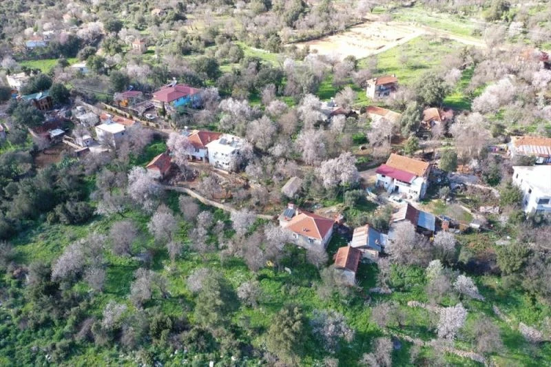 ANTALYA (AA) - Antalya'nın Kaş ilçesinde çiçek açan badem ağaçları görsel şölen sunuyor.