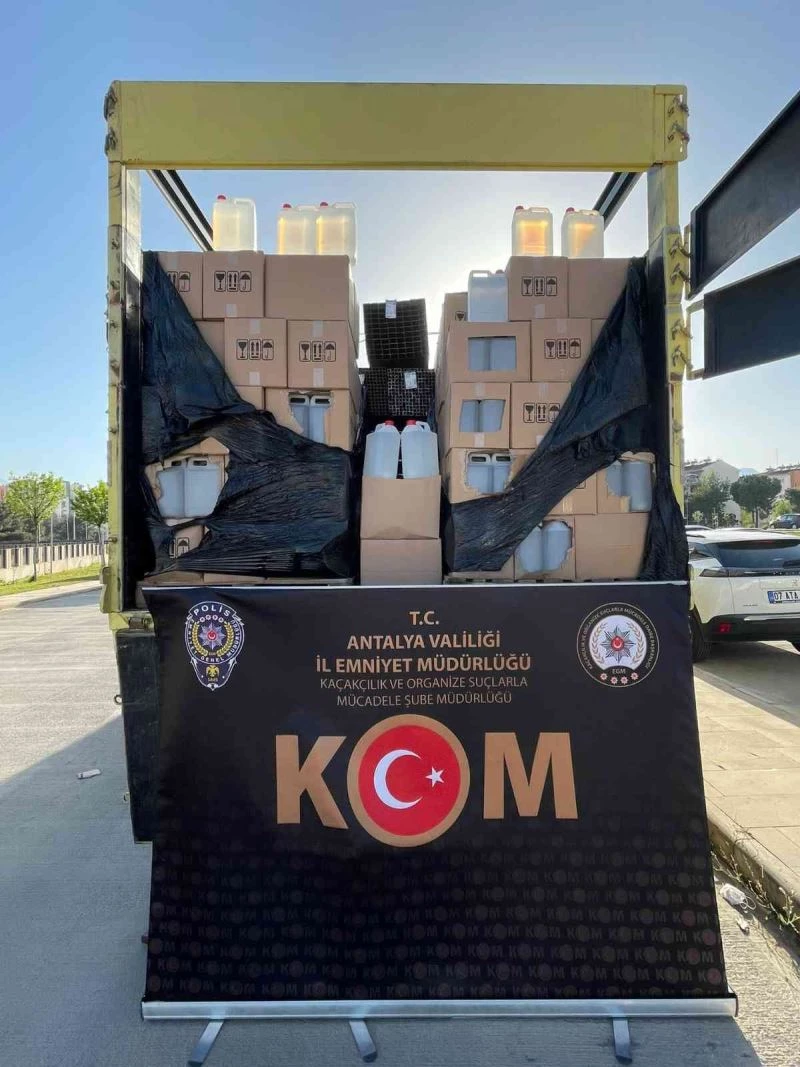 Antalya’da bir tıra düzenlenen operasyonda 2 bin litre sahte sahte alkol ele geçirildi