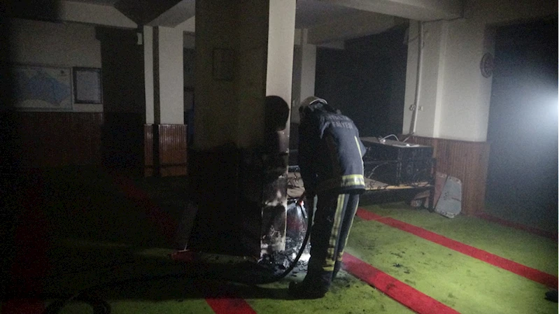 Kısa sürede söndürülen yangın nedeniyle camide hasar oluştu.