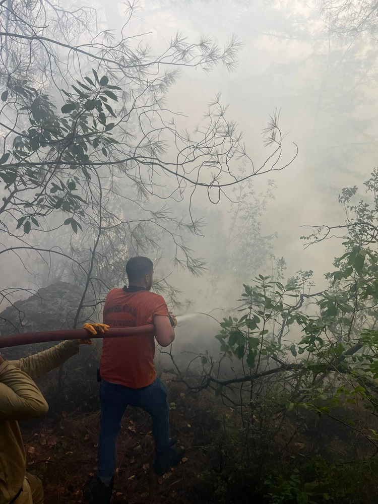 İhbarın ardından olay yerine ulaşan Manavgat Orman İşletme Müdürlüğü ekipleri yangına müdahale etti.