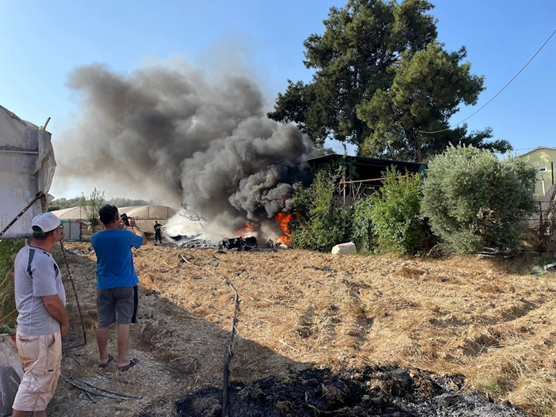 Yoğun dumanların çıktığı yangın, çevredeki sera ve yerleşim yerlerine sıçramadan itfaiye ekiplerince kısa sürede söndürüldü.