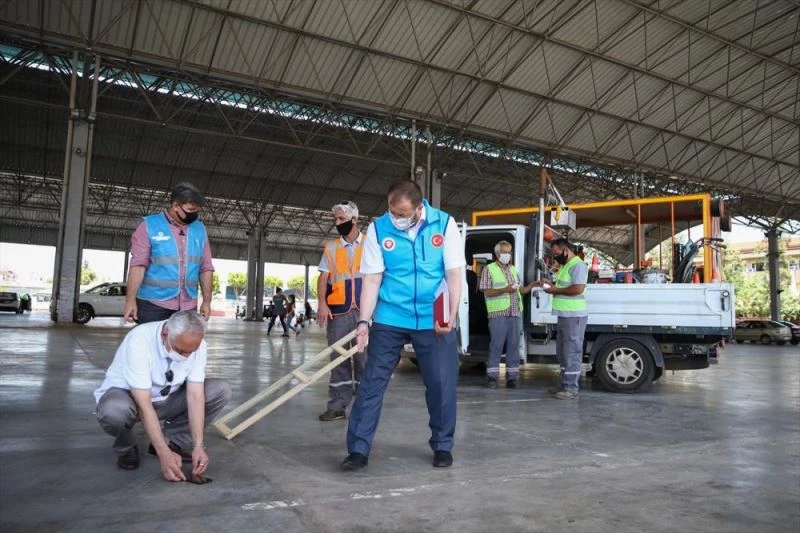 ANTALYA (AA) - Antalya'da cuma namazının yeni tip koronavirüs (Kovid-19) tedbirleri kapsamında sosyal mesafe kuralına göre kılınması için kapalı pazar yerleri, okul bahçeleri ve bazı camilerde çalışma yapılıyor.