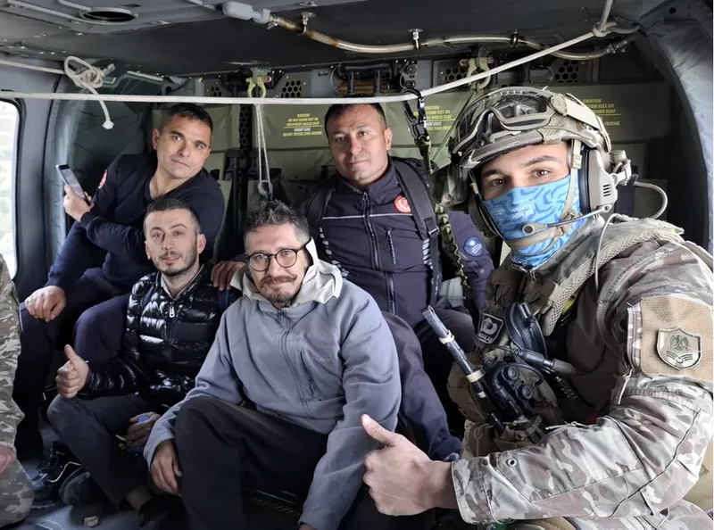 Ekipler, zorlu arazi koşullarında yaklaşık 5 saat süren yürüyüşün ardından iki mühendise ulaştı. Konya 3. Ana Jet Üssü'nden havalanan askeri helikopterle bu sabah mahsur kaldıkları yerden alınan Yalçın ve Cömert, Akseki Komando Jandarma Tabur Komutanlığı'na ulaştırıldı.