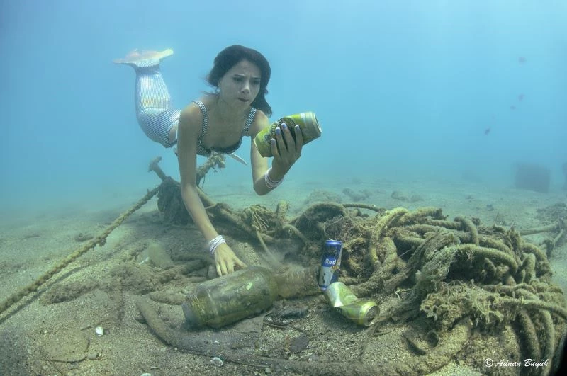Antalya’da Dünya Çevre Günü ve Marmara Denizi’ndeki müsilaj tehlikesine dikkat çekmek için gerçekleştirilen sualtı dalışında, sualtı modeli ve dalış hocaları, karşılaştıkları manzara karşısında adeta şoka uğradı. Alkol kutuları, şişe ve plastik atıkların bulunduğu birçok çöple karşılaşan denizkızı kostümlü sualtı modeli Melike Selçuk, üzüntüsünü ve kızgınlığını gizleyemedi.