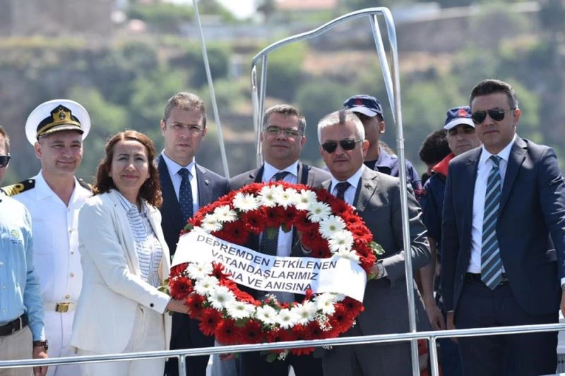Antalya'da depremzedeler anısına denize çelenk bırakıldı