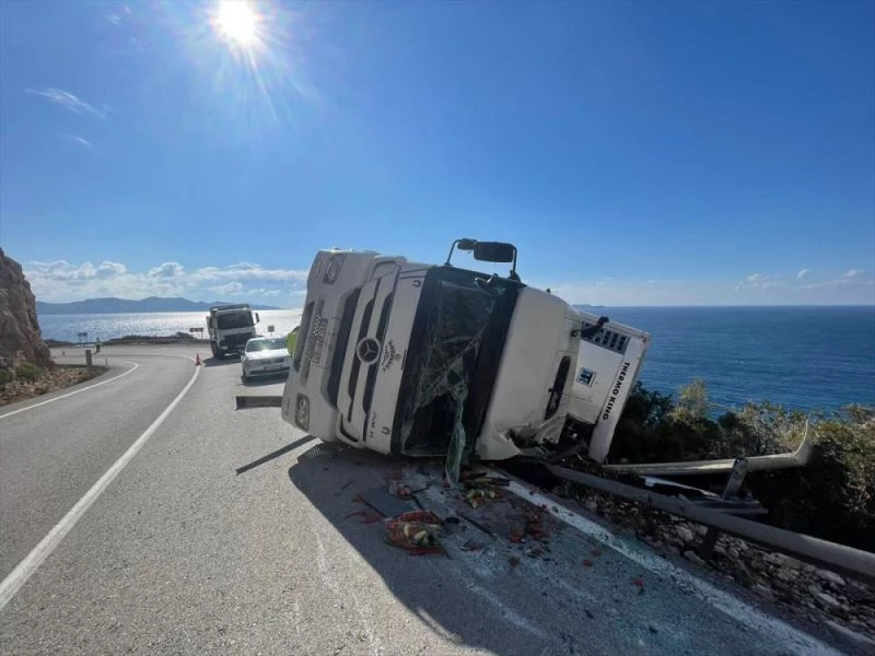 M.A.D'nin (38) kullandığı 31 APP 67 plakalı tır, Kaş-Kalkan kara yolunda seyir halindeyken Gökçeören Mahallesi yakınlarında devrildi.