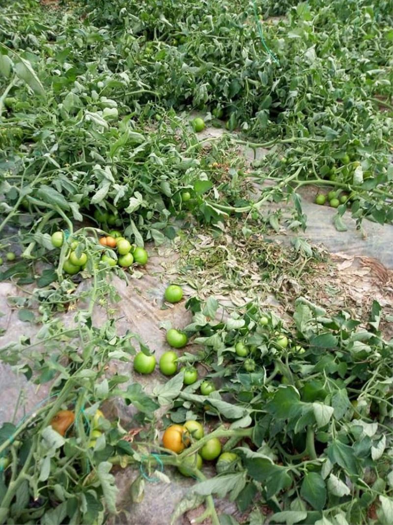 Necati Yaman, Çiplakli Mahallesi'ndeki 2,5 dönümlük serasina zarar verildigini ve domates fidelerinin kökünden söküldügünü gördü.
