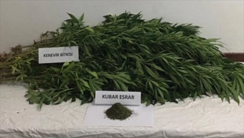 Belirlenen adreslere düzenlenen eş zamanlı operasyonda arama yapan ekipler, 35 kök hint keneviri ile 22 gram esrar ele geçirdi.
