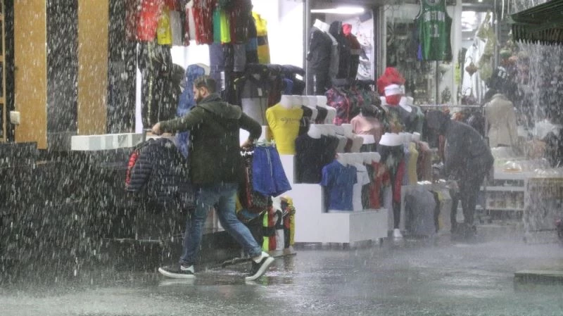 Antalya’da esnafın sağanak yağmurda mal kurtarma mücadelesi