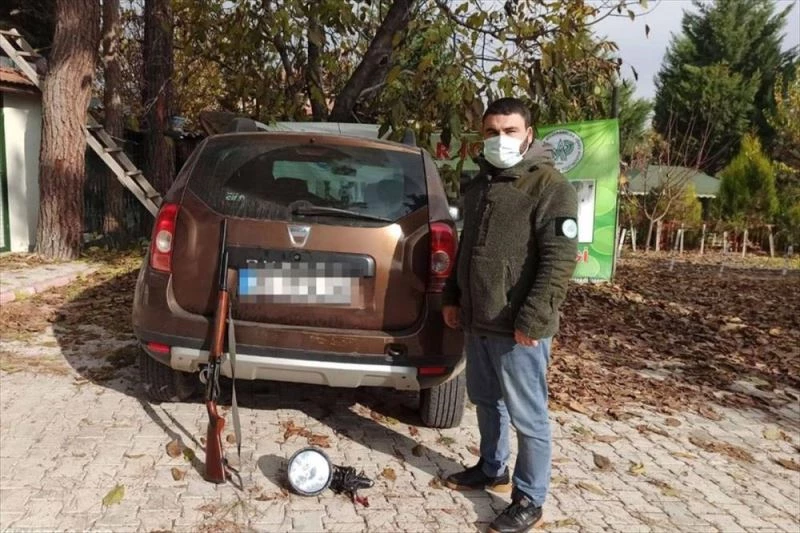 Yuva Jandarma Karakolu'nda ifadeleri alınan şüphelilerin, otomobillerinin aküsüne bağladıkları projektör yardımıyla çevreye far tutup, takozsuz yarı otomatik av tüfeği ile avlandıkları belirlendi.