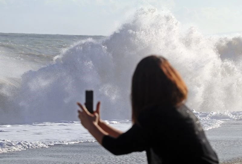 Antalya’da gün boyu etkili olan sağanak ve fırtına, öğlen saatlerinde yerini güneşli havaya bırakınca vatandaşlar dünyaca ünlü Konyaaltı Sahili’ne akın etti. Vatandaşlar metrelerce yükseklikteki dev dalgaların fotoğrafını çekerken, define avcıları da demir para ve değerli eşya aradı.