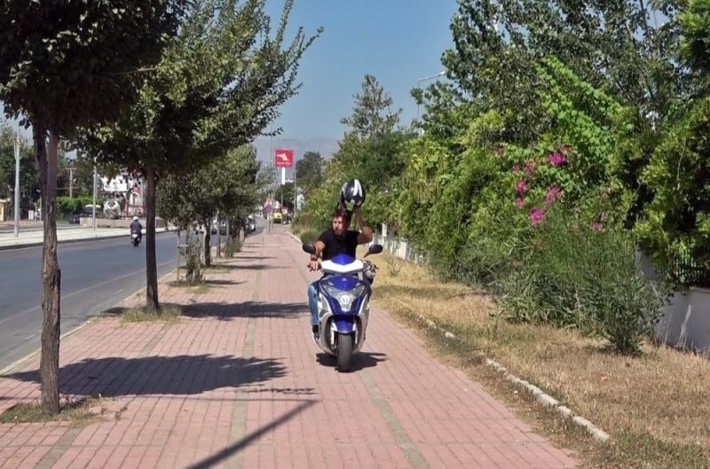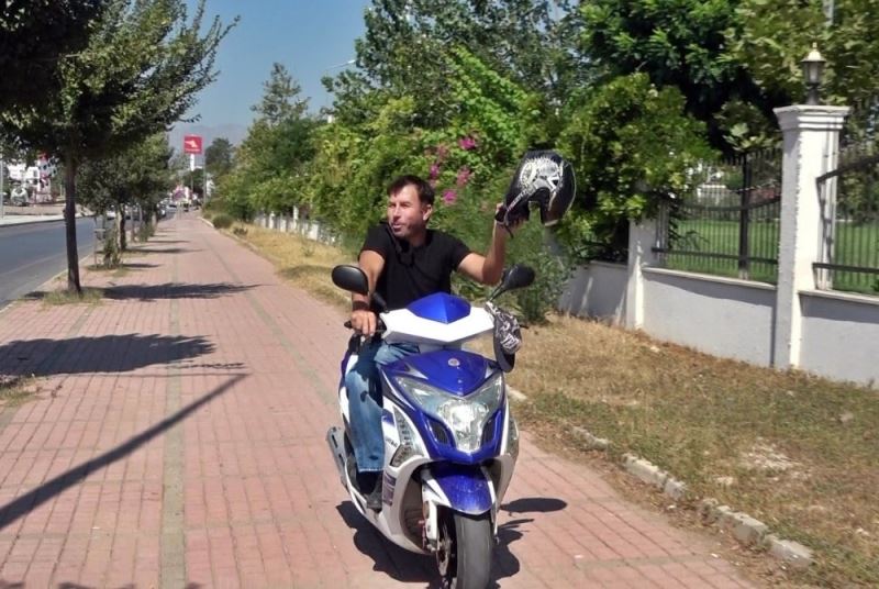 Antalya’da meydana gelen trafik kazasında yaralanan motosiklet sürücüsünün arkadaşı, kask takarak bindiği motosikleti arkadaşının evine götürmeye çalıştı. Peşine takılan trafik polisi tarafından kırmızı ışıkta yakalanan kişi, motosikleti kaza yerine getirmek zorunda kaldı. Sürücü bu sırada kendisini çeken gazetecilere, motosikletini sürerken kaskını çıkarttı, ‘böyle çek’ diyerek poz verdi.