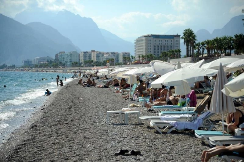 Sicak havayi degerlendirmek isteyen kent sakinleri ve tatilciler, Konyaalti ve Lara sahillerinde yogunluga neden oldu.