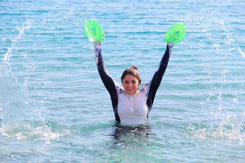 Denize girenlerde Hatice Ece Tekin, Antalya’da havanın soğuk olmasına rağmen sık sık yüzdüklerini kaydetti.