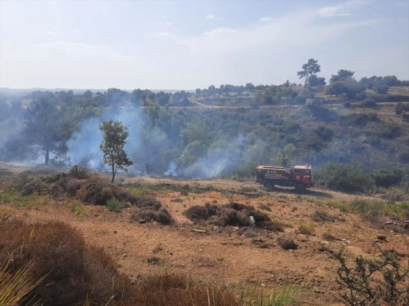 Gündogdu Mahallesi Vahapli mevkisinde eski mezarligin da bulundugu ormanlik alanda henüz belirlenemeyen nedenle yangin çikti.