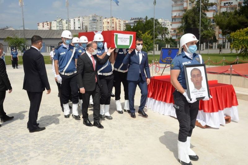 Antalya’da tedavi gördüğü hastanede yaşamını yitiren polis memuru Mehmet Deliağa için, İl Emniyet Müdürlüğü bahçesinde tören düzenlendi.