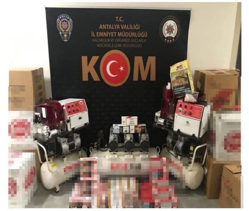 Antalya’nın Aksu ilçesinde kaçak sigara üretimi yapılan bir adrese düzenlenen operasyonda 33 bin adet içi tütünle doldurulmuş ve 212 bin 400 adet gümrük kaçağı boş makaron ele geçirildi.