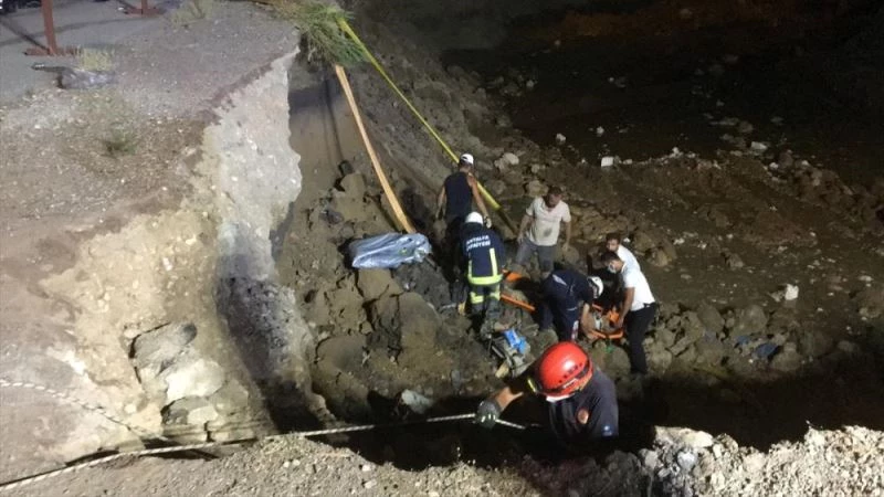 İnşaattaki suyu tahliye etmeye çalışan Yılmaz Turan (39) kayan toprağın altında kaldı.