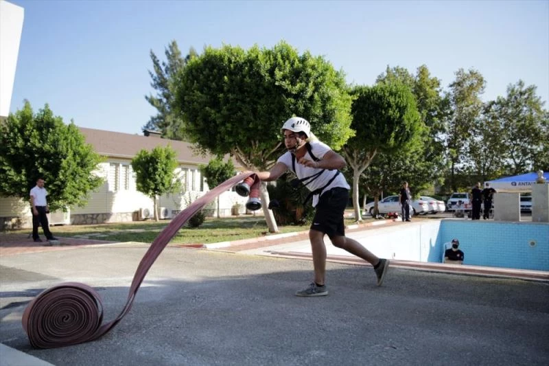 Antalya'da itfaiye eri olmak için zorlu parkurlarda ter döktüler