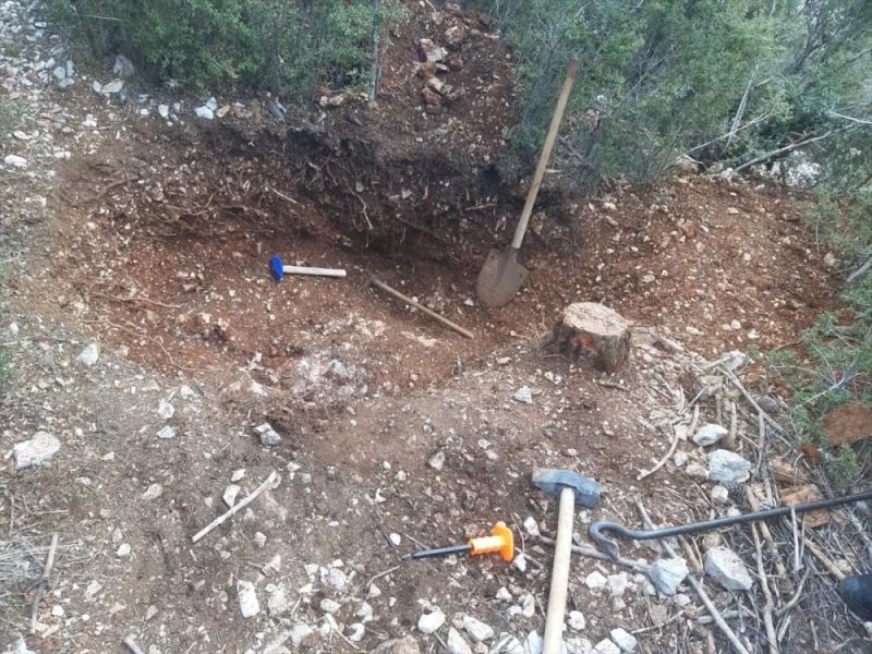 Bölgeye giden ekipler, şüpheliler M.S, R.T. ve E.A'yü kazı yaparken suçüstü yakaladı.