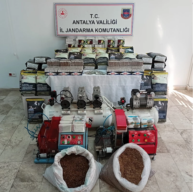 Ekiplerin Kepez ilçesinde 2 adrese düzenlediği operasyonda 2 hava kompresörü, 2 sigara sarma makinesi, 144 kilogram kıyılmış kaçak tütün, 350 bin boş makaron, 78 tütün doldurulmuş makaron ve 1000 dolar ele geçirildi.